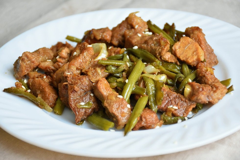 Сытное мясное блюдо для обеда или ужина. Свинина со стручковой фасолью