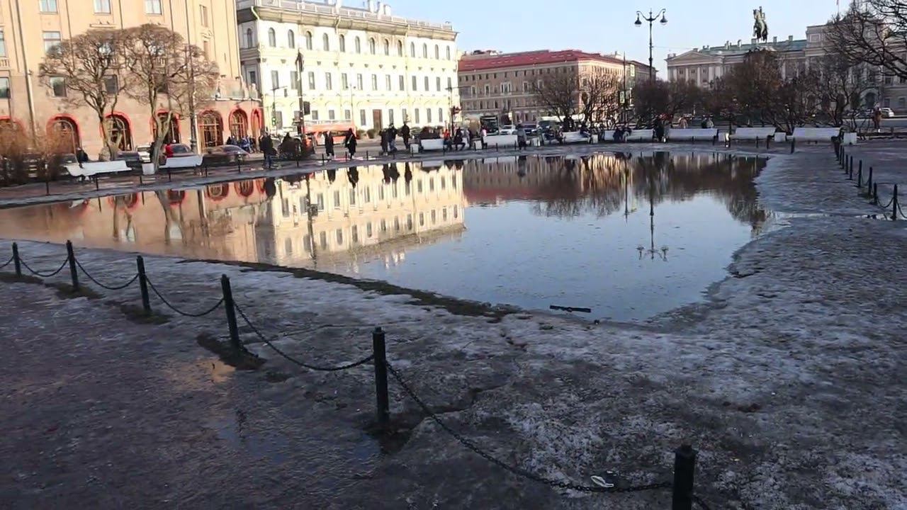 Большая лужа перед Асторией. Солнечный весенний день. Воскресенье, 3 марта 2024 г.