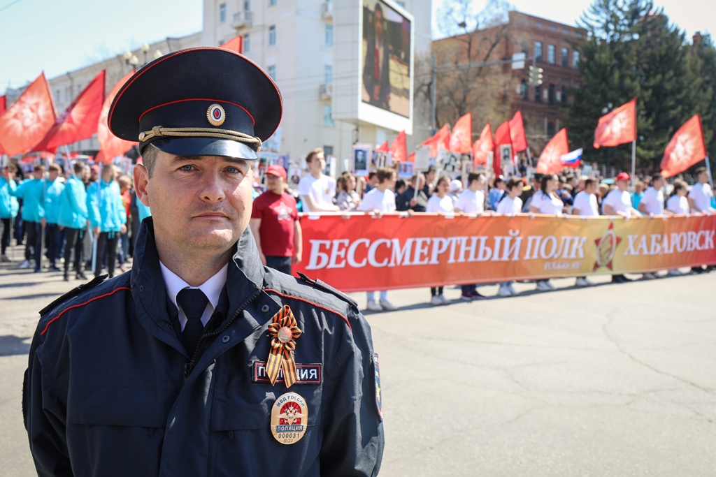В Хабаровске полицейские обеспечили общественный порядок и приняли участие в акции "Бессмертный полк" во время празднования Дня Победы в Великой Отечественной войне
