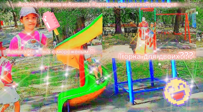 Алинка Калинка и Антошка Картошка на детской площадке! Алинка калинка с мороженым? Горка для двоих?!??