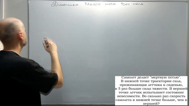 Мы решим две задачи на тему веса при вращении тела по окружности Теория кратко: https://youtu.be/H2z2T61ivLQ 1. Каким должен быть период вращения Земли вокруг своей оси, чтобы тела на экваторе находились в состоянии невесомости? 2. Самолет делает "мертвую петлю". В нижней точке траектории сила, прижимающая летчика к сиденью, в 5 раз больше силы тяжести. В верхней точке летчик испытывает состояние невесомости. Во сколько раз скорость самолета в нижней точке больше, чем в верхней?