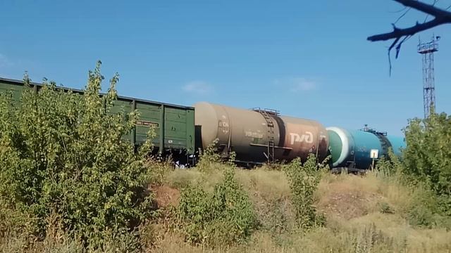 Грузовой поезд следует по 2гл.пути линии Лихая - Морозовская. СКЖД. 04.07.19г. 16:31.