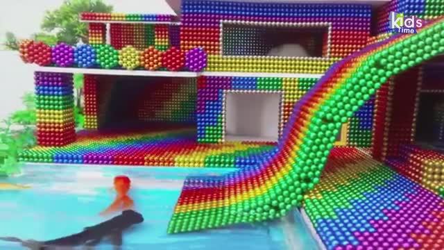 Сделай сам - построй особняк с надувной горкой для черепахи из магнитных шариков