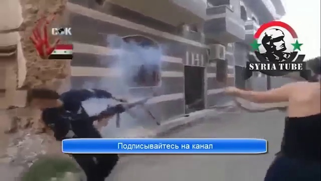 СИРИЯ ГИЛЬЗА ПОПАДАЕТ БОЕВИКУ В ГЛАЗ