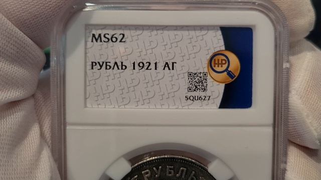 рубль 1921 АГ в слабе ННР MS62