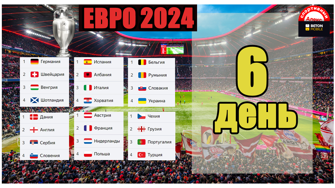 ЕВРО 2024. День 6. Результаты, расписание, таблицы.