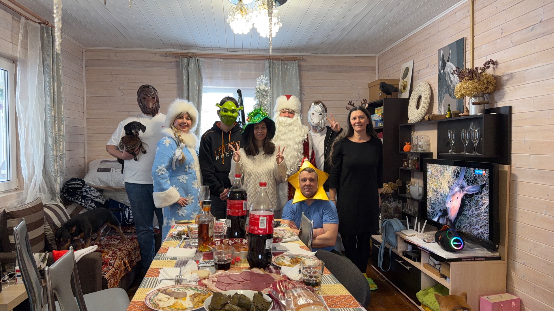 Маргарита Дачница с собачкой Ждем веселых гостей. Вовки на сестра с семьей иЛерочка с очень большой семьей. Срочно пришлось тащить стол из террасы. На его место пристроила мини столик и заодно по фантазировала про камин. Дедушка Мороз с внучкой заглянули. Повеселились от души. Вовка победил во всех конкурсах. И заметьте, без капли алкоголя)))) С Новым годом 🎄