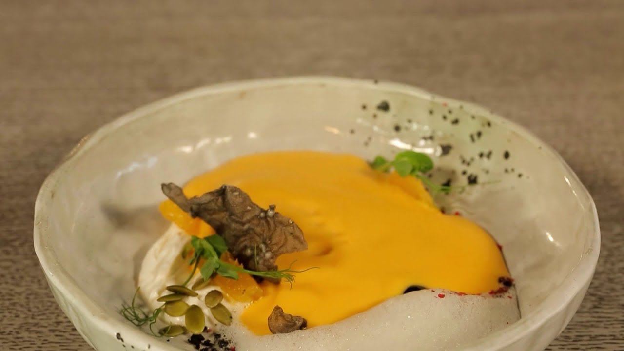 Тыквенный суп с апельсинами и кокосовой пеной