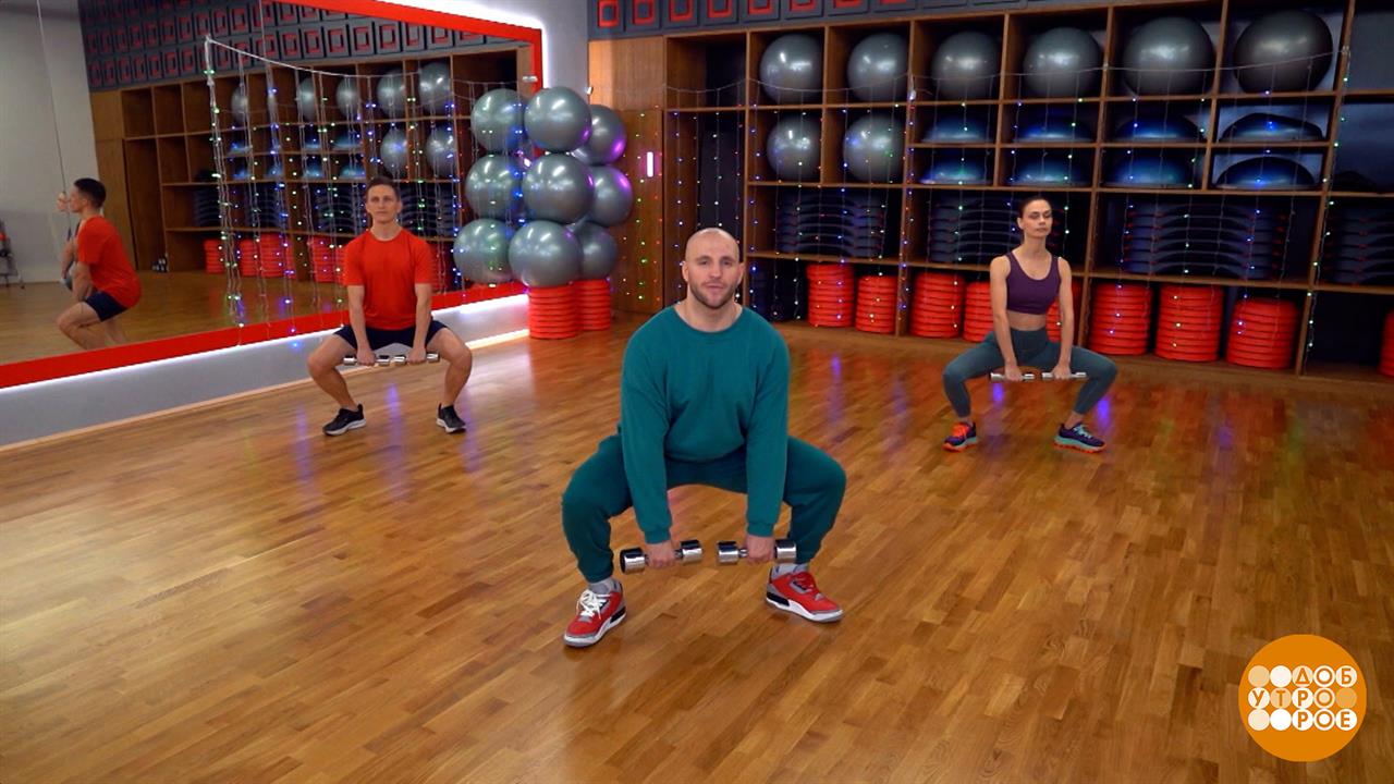 Приседания с гантелями. Доброе утро. Фрагмент выпуска от 20.12.2024