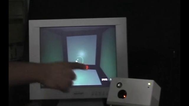 Tracking of multiple targets is also possible without replicating any part of the system (targets are considered sequentially). Such a configuration allows, for instance, multiple users to interact on the same virtual space; or a single user to control several virtual tools at the same time, resize windows and control information screens, as imagined in Spielberg's film ``Minority Report'' - but without the need to wear special gloves nor markers. A very interesting characteristic of the proposed 3D laser-based locator, is that it also can be used as an output device: indeed, the laser scanner can be used to write information back to the user, by projecting alphanumeric data onto any available surface, like the palm of the hand. This has been successfully demonstrated, without having to stop the tracking. Finally, hardware simplicity is such that using state-of-the-art Micro-Opto-Electro-Mechanical-System (MOEMS) technology, it should be possible to integrate the whole system on a single chip, making a versatile human-machine input/output interface for use in mobile computing devices. laser active markerless tracking gesture recognition