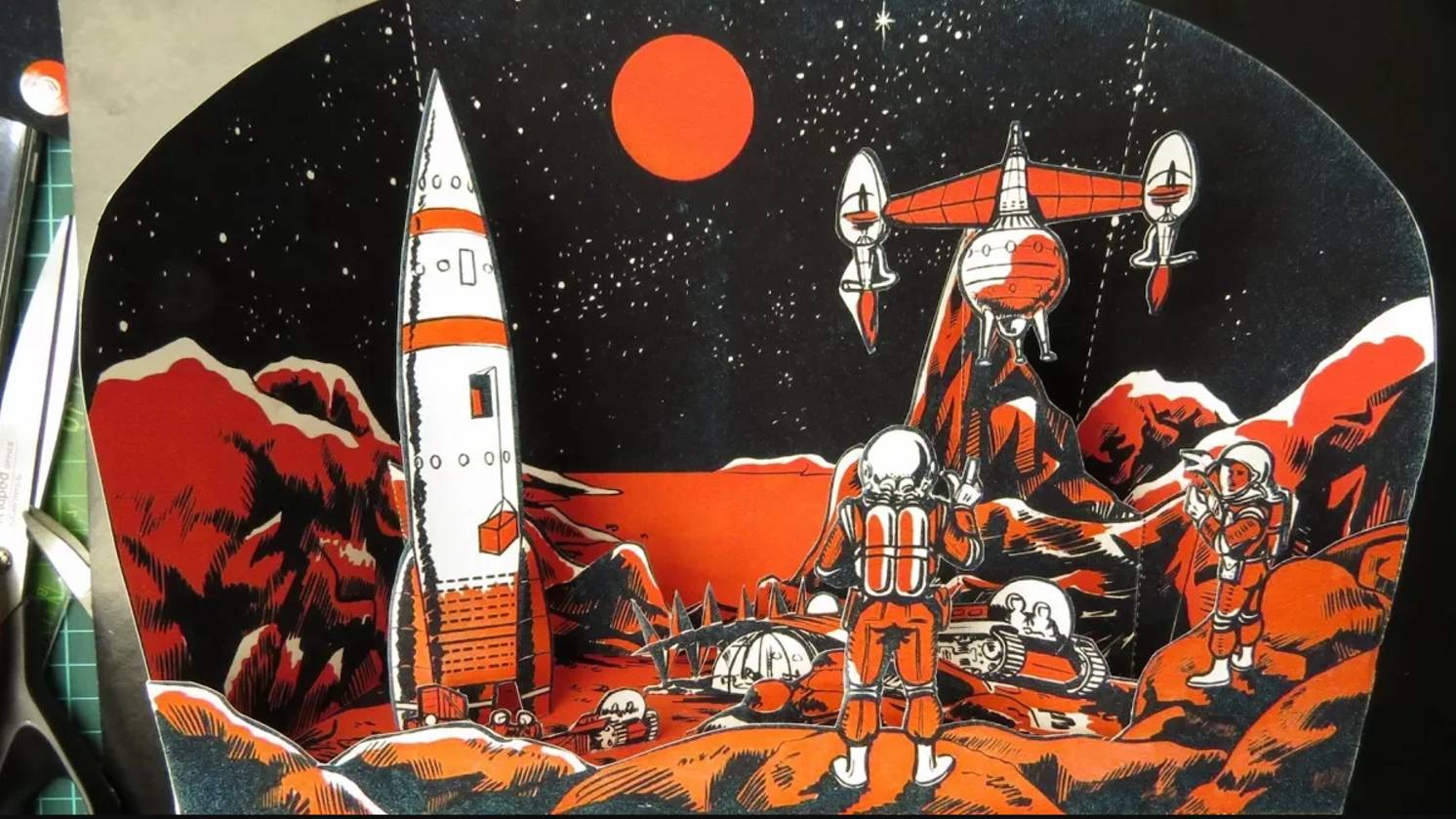 Освоение космоса диорама из бумаги своими руками. Как сделать космическую диораму из бумаги своими руками - секрет от Sekretmastera. Освоение космоса. Фантастическая космическая диорама из бумаги своими руками. Шаблон найден в старом журнале из Франции, картинка опубликована еще до полета первого Спутника в октябре 1957 года. По мнению авторов так должна была выглядеть панорама освоения Луны. Объем диорамы погружает нас в фантастический мир освоения космоса. Диорама собрана из двух листов бумаги. Отличная поделка из бумаги ко дню космонавтики 12 апреля. Шаблон для скачивания https://bibigreycat.blogspot.ru/2015/07/diorama-ici.html или на сайте Секрет Мастера http://sekretmastera.ru/?p=31006. Мастер делится всеми секретами сборки диорамы в представленном видео. Это удачная поделка для конкурса ко дню космонавтики. #денькосмонавтики #12апреля #марс #избумаги #своимируками #космос