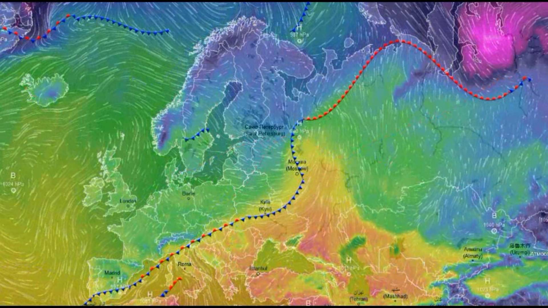 Движение воздушных масс воздуха над Европой и ЕТР за аномально-теплый март 2025 года