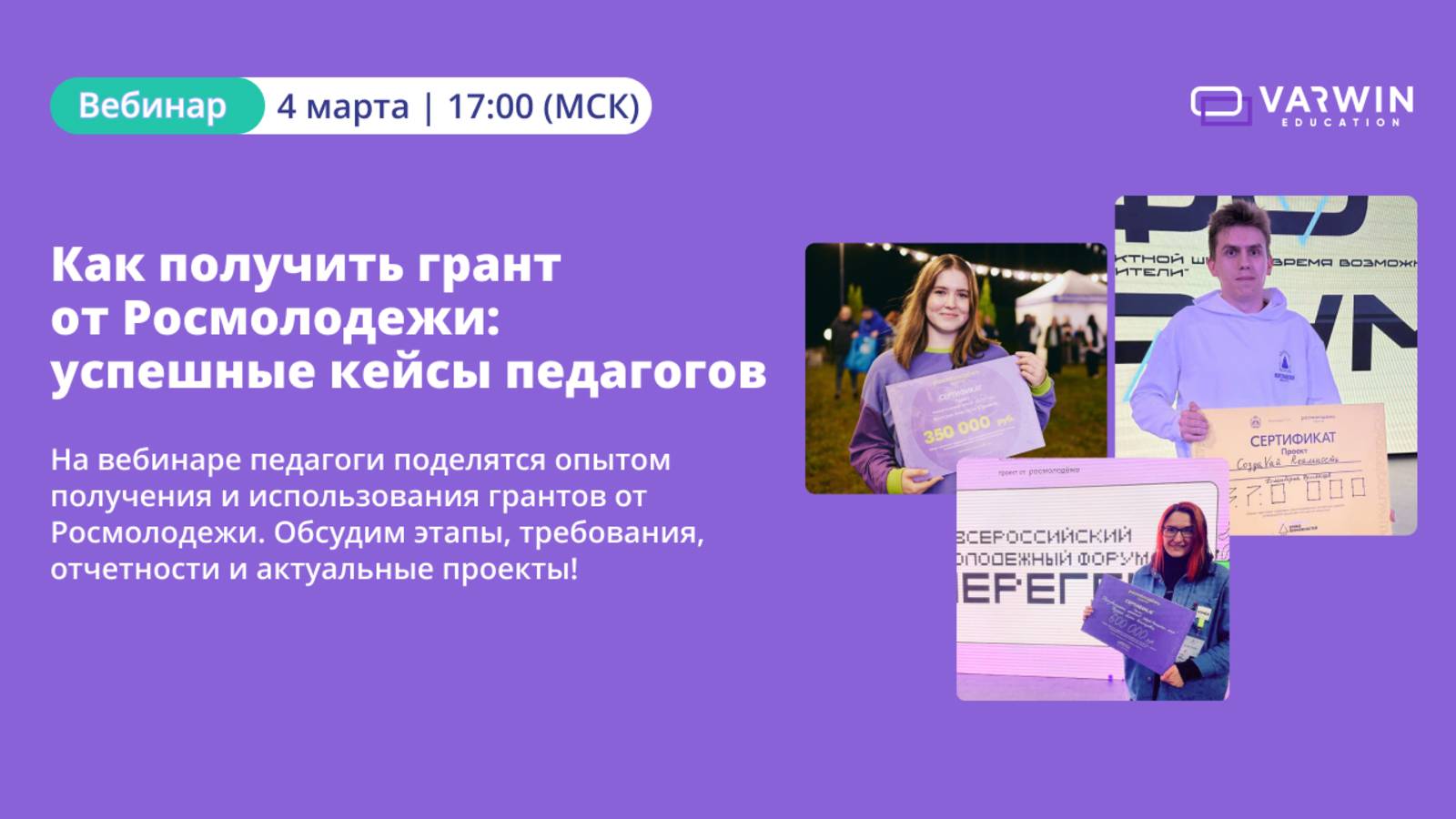 Как получить грант от Росмолодежи: успешные кейсы педагогов | Вебинар с педагогами