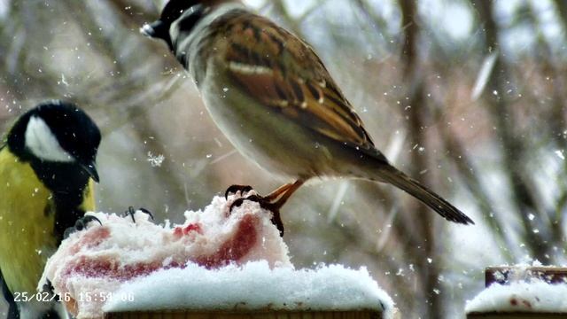 Воробьи в кормушке -
