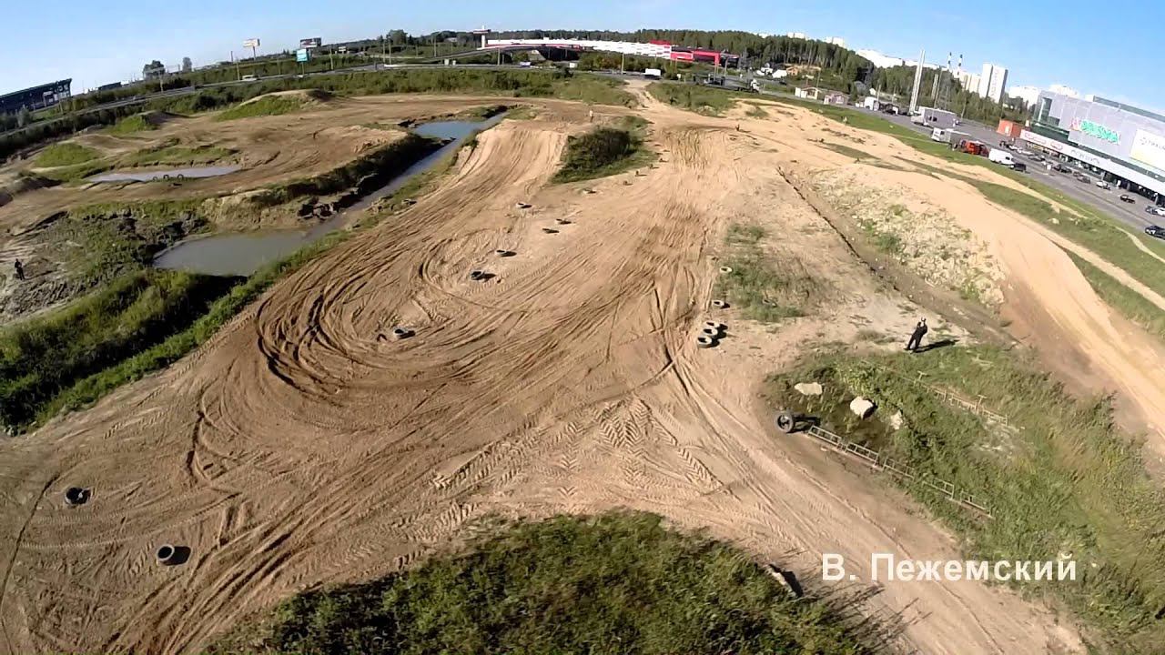 Призма-трек. мотокросс гонки съемка с квадрокоптера.