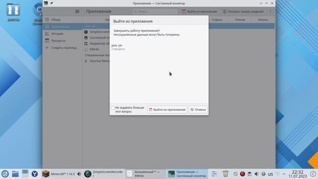 Если завис Майнкрафт - запускаем Системный монитор в Роса Фреш