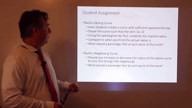 The Physics of Rollercoasters using NL2 simulator. Physics theory is combined with relevant NL2 simulations to cover topics such as: lateral/ horizontal gs, vertical gs, banked vs. unbanked turns, zero g vs. negative g curves. Warning!! There are mathematical equations (high school to early college level physics/engineering dynamics/math). Sliding friction along x' axis small compared to centrifugal acc. ignored for now.