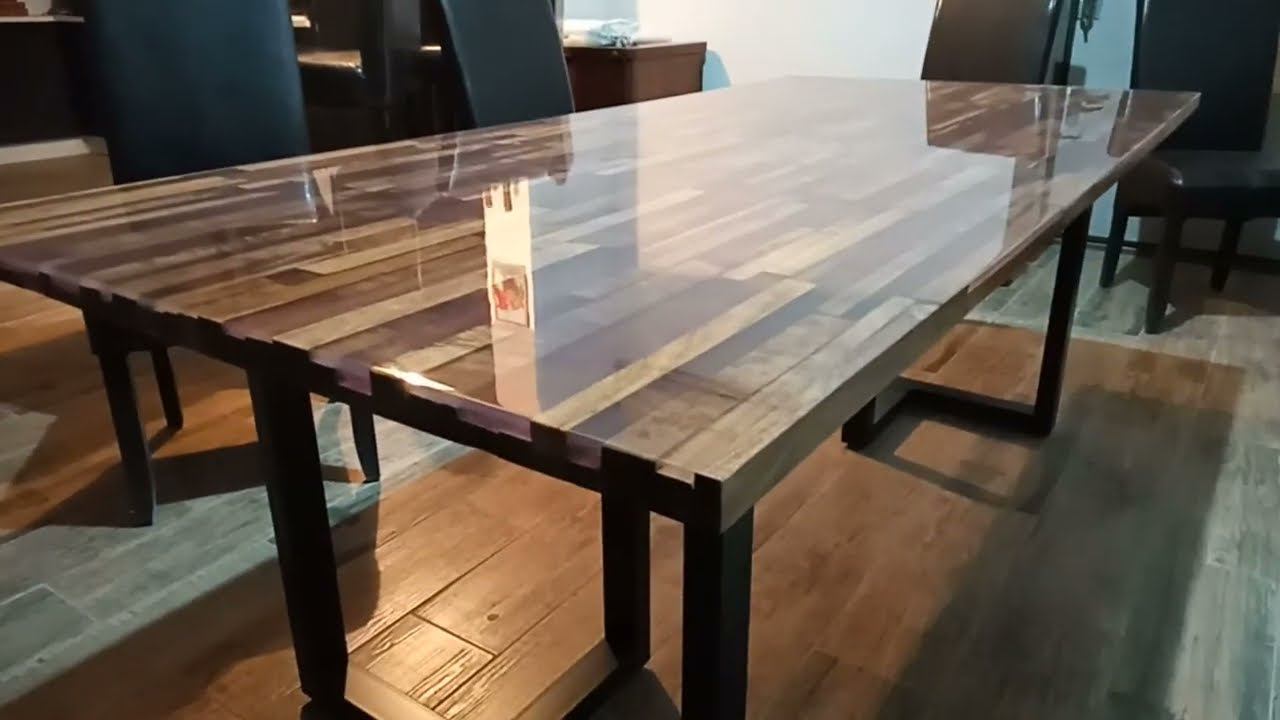 стол из орешника залит эпоксидной смолой