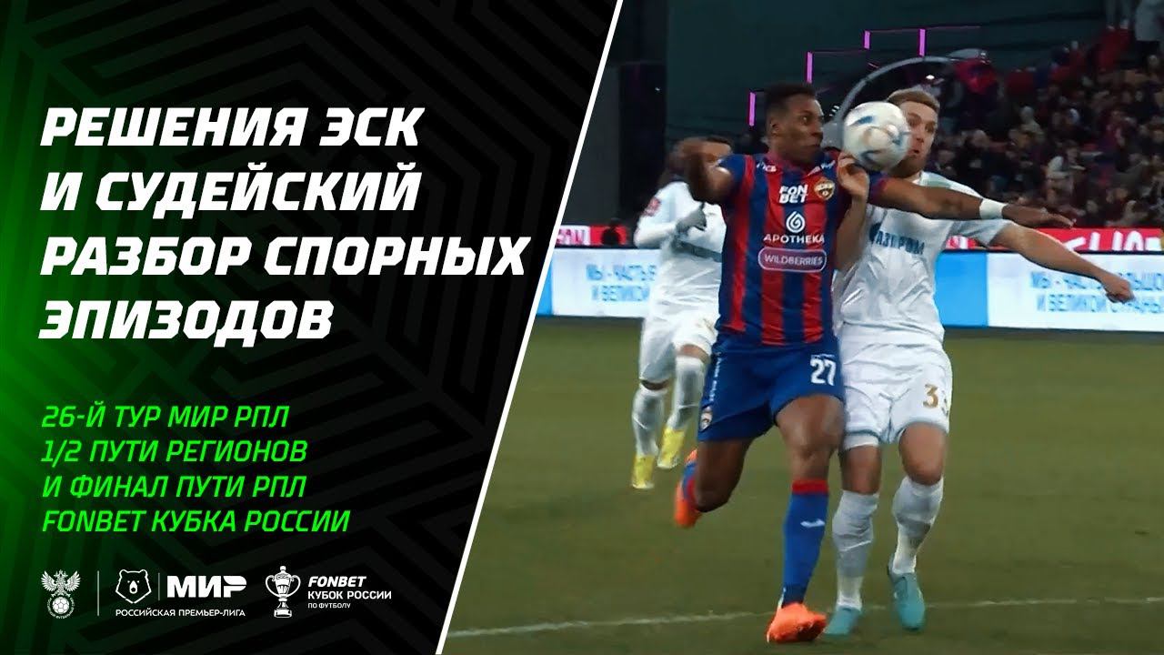 Решение ЭСК и судейский разбор спорных эпизодов 26-го тура Мир РПЛ и матчей FONBET Кубка России