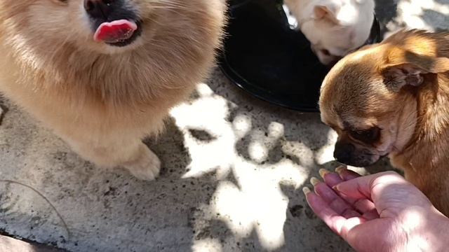 Немножко полакомились, делают вид, что я их недокармливаю.