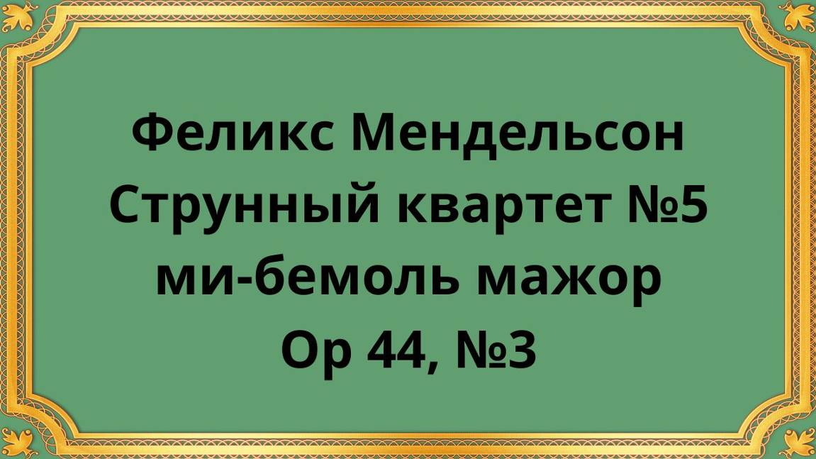 Феликс Мендельсон Струнный квартет №5 ми-бемоль мажор, Op 44, №3