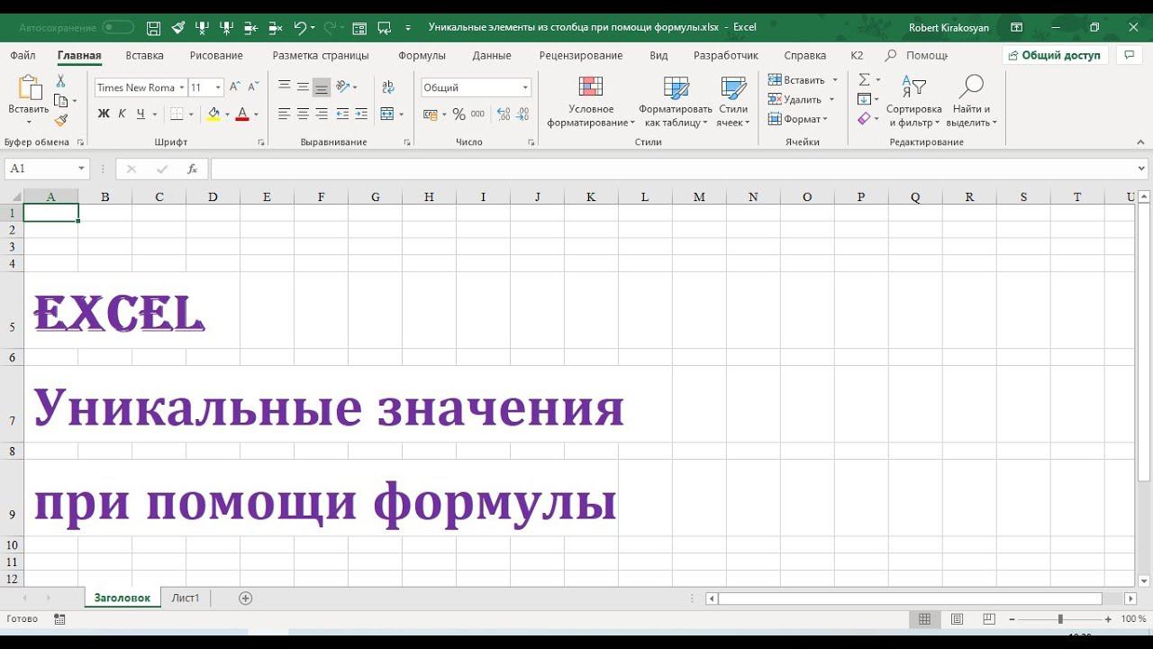 Уникальные значения при помощи формулы Excel