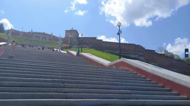 О путешествии внучки с классом в г. Нижний Новгород. Фото на память (Волга, набережная, старинный кремль, вид на Чкаловскую лестницу с 650 ступеньками, улицы и многое другое), объединенное с песней про город Нижний Новгород.