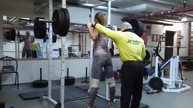 Анастасия - личный рекорд в приседаниях. Спортстудия