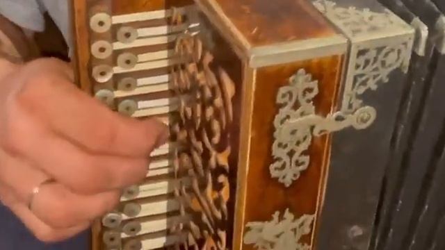 Уникальная гармонь мастера Петра Муравина. Мастер жил и работал в конце 19 столетия в Ярославском городе Рыбинск. Гармонь была изначально русского строя,но в последствии была переделана в хромку. состояние ветхое но живое!
