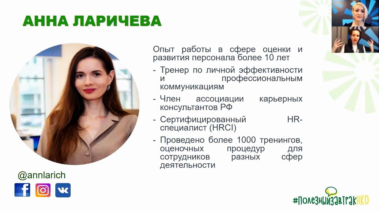 От чего зависит личная эффективность? Как понять что для меня важно? Что такое списочное планирование «To do list» и планирование по Кайдзен? #ПолезныйзавтракНКО - это цикл коротких онлайн-встреч для представителей некоммерческих организаций. В компании интересных людей мы делимся полезными знаниями о возможностях профессионального и личностного развития. Модераторами встреч выступают лучшие тренеры и специалисты Центра «Моя карьера», приглашенные спикеры, а также сами представители НКО. Спикер вебинара: Анна Ларичева, Тренер центра «Моя карьера», сертифицированный HR-менеджер HRCI, карьерный консультант. Модератор: Мария Белогурова, ведущий эксперт центра занятости «Моя карьера» https://mycareer.moscow/#/applicant