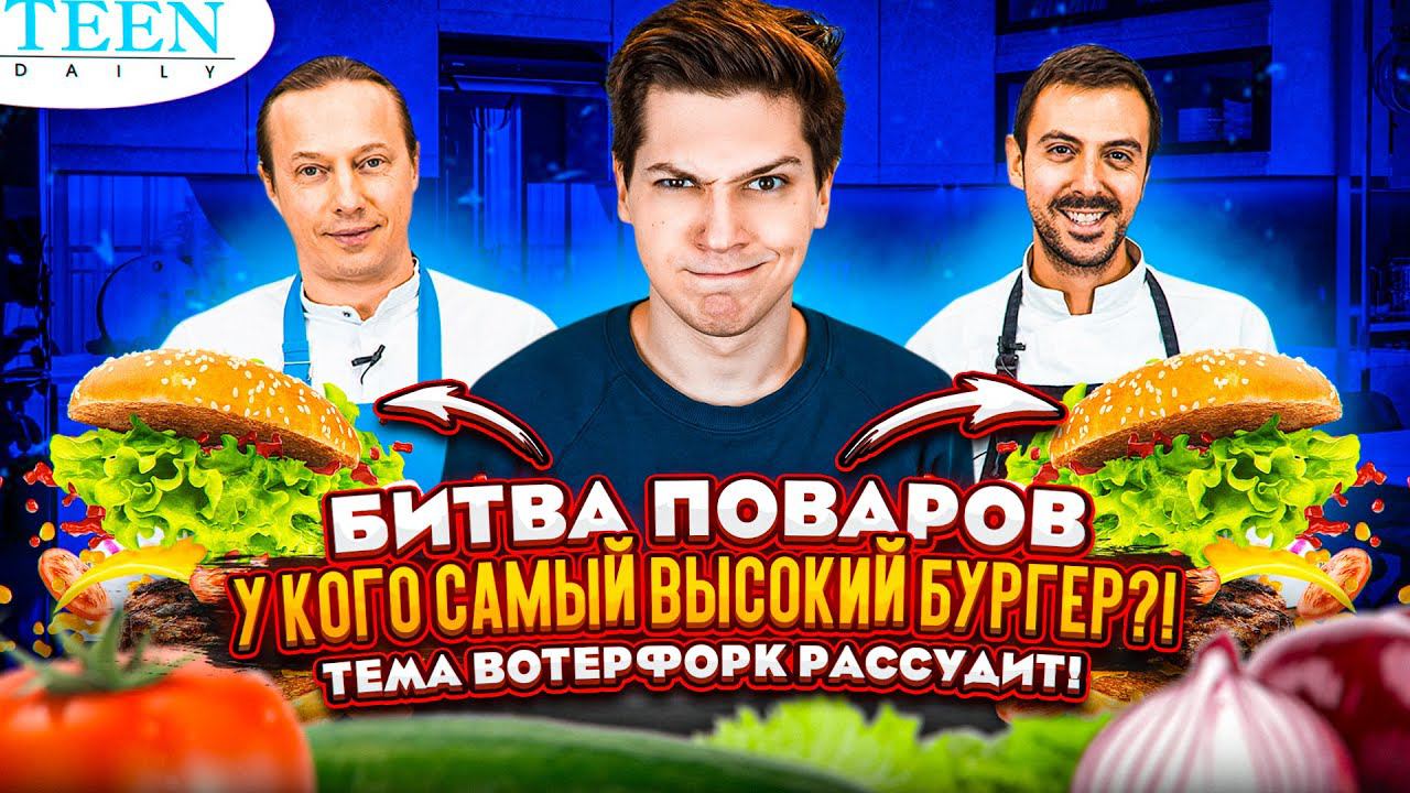 Бургеры обожают все! Поэтому TeenDaily решил провести кулинарный баттл по приготовлению этого вида фастфуда — но не обычного, а самого высокого. Соревновались во «вкусном» поединке профессиональные шеф-повара: наш друг из солнечной Сицилии Джованни Филиппоне и известный фуд-блогер Василий Емельяненко — его YouTube-канал насчитывает 2,78 млн подписчиков. В качестве дегустатора выступил другой популярный блогер — Артем Пименов, он же Waterfork. Хочешь знать, что из этого вышло и кто победил — смотри видео. Приложение TeenDaily в AppStore: https://apps.apple.com/ru/app/teendaily/id1584144143 в Google Play: https://play.google.com/store/apps/details?id=ru.teendaily.teendaily Сайт: www.teendaily.ru Канал TeenDailyru Media про звезд: https://www.youtube.com/channel/UCVCob_pYdl2RQ8GKo8zFR2A Канал TeenDaily Cooking: https://www.youtube.com/channel/UCl76vonNFtEYQZJTg89YYOg Канал TeenDaily Sport: https://www.youtube.com/channel/UC20xN2sX3YXKgZHxMZjAepA TeenDaily в TikTok: https://vm.tiktok.com/ZSJnUJtb3/ TeenDaily в Telegram: https://t.me/teendailyru TeenDaily ВКонтакте: https://vk.com/teendaily #Teendaily #рецепты #бургер