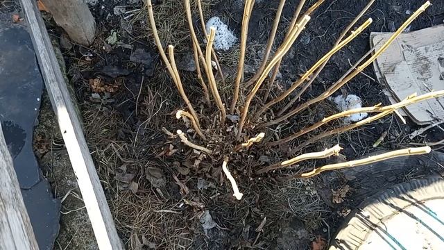 Расправляюсь с сугробами. Раскапываю и обрезаю свои гортензии.