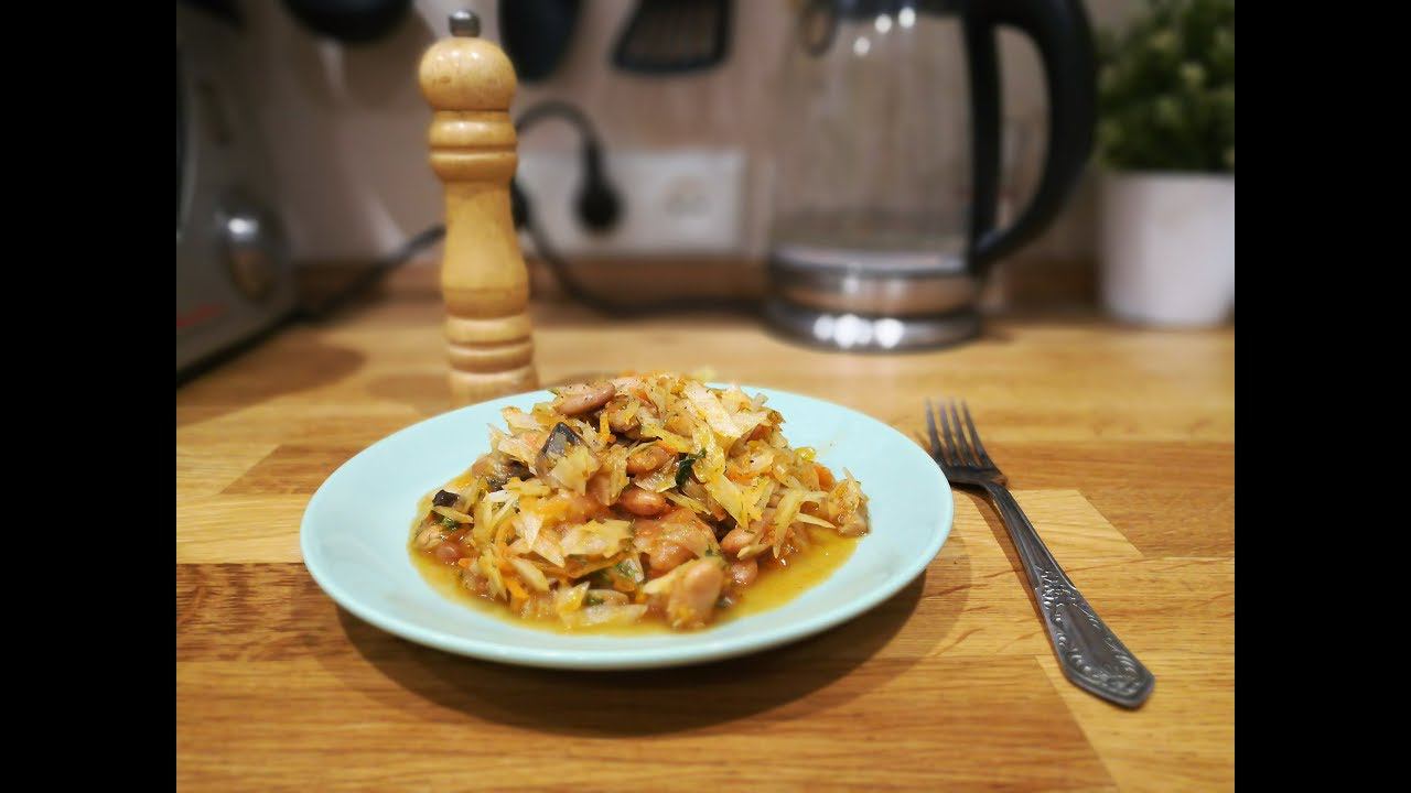 Тушеная капуста с фасолью и грибами постный рецепт