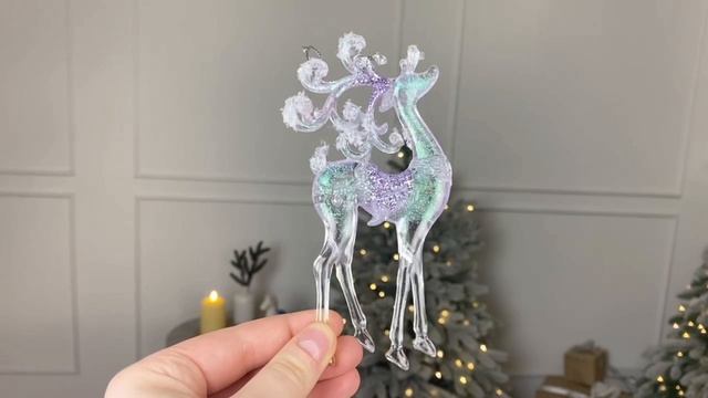 Ёлочная игрушка из акрила УЗОРЧАТЫЙ ОЛЕНЬ, прозрачный с радужным глиттером, 14 см, 160759