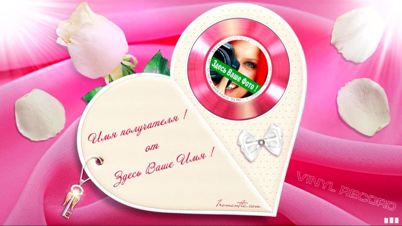 ЗАПОЛНИТЬ ЭТО ПОЗДРАВЛЕНИЕ СВОИМИ СЛОВАМИ (установите нужную дату и время доставки для своего получателя) : Здесь ➞ https://1romantic.com/musicalnye-pozdravleniya/nezhno-lyublyu/ Вам остаётся только, написать нужный вам текст и загрузить фото, свою или Вашего получателя. 1Romantic.com Является первым и единственным в мире сервисом интерактивных видео поздравлений. Мы используем собственную уникальную технологию, добавляя ежедневно самые новые и последние разработки программирования. У нас Вы можете найти поздравления на любой вкус, только высокого качества и разрешения. Согласитесь, всегда приятней, отправить поздравления от себя лично, чем пересылать чужие, с уже заготовленным стандартным и быстро мерцающим текстом, как рекламный баннер, пересылаемый друг-другу от тысячи к тысячам где нет Ваших Имён. Задумайтесь ! Это выглядит слишком наивно и как минимум глупо, особенно для людей которые умеют писать и читать (на мою розочку сверкалку или стикер и отвали). Теперь всё будет иначе ! Вы можете сами передать своё настроение, тем людям, которым Вы будете адресовать своё поздравление. Теперь Вы сами, творец, художник и поэт своих чувств, наполняя видео открытку своими словами, излучая только самое доброе, искреннее из своих тёплых сердец. Загрузить свою любимую фотографию или фотографию получателя, что безусловно, будет гораздо приятней и неожиданней для него) Безусловно, мы подумали и о музыкальном оформление. Наверняка, Вы будете подбирать нужные слова и фотографию под ту песню, которую Вы захотите загрузить сами, а не ту которую Вам навязывают. Ну и самое главное, Вы можете использовать функцию добавления своего голоса, программа сама наложит Ваш голос на начало загруженной песни. Поверьте это очень оригинально, особенно если Ваш друг не слышал Вас долгие годы. Такое поздравление можно сделать действительно за 30-60 сек. Но если Вы творческий человек, оно не отпустит Вас так быстро))) И Вы будете думать, сочинять, плакать, улыбаться, восхищаться, раскрыв в себе новые таланты... возможно это станет Вашим первым собственноручным творением . Удачи Вам ! С уважением, Ваши Романтики ! Краткий список предлагаемых нами поздравлений... Поздравления с днем рождения женщине. Поздравления с днем рождения мужчине. Поздравления с днем рождения другу. Поздравления с днем рождения подруге. Поздравления с днем рождения для детей. Поздравления с днем святого Валентина. Поздравления Папе. Поздравления с днем рождения Маме. Прикольные поздравления. Видео поздравления с днем рождения. Музыкальные поздравления с днем рождения. Слайд-шоу с днем рождения. и многое-многое другое.