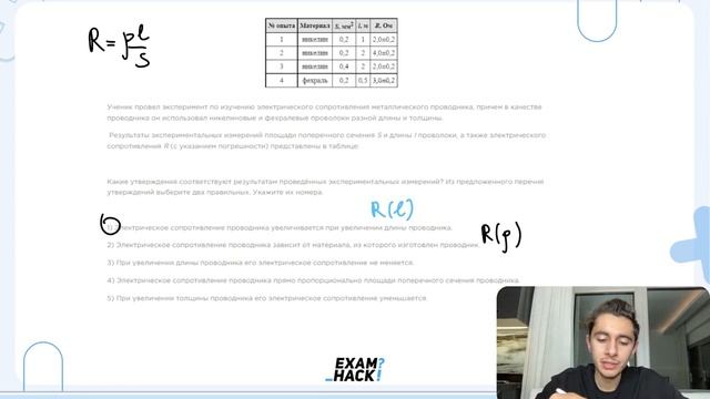 Ученик провел эксперимент по изучению электрического сопротивления металлического - №26375