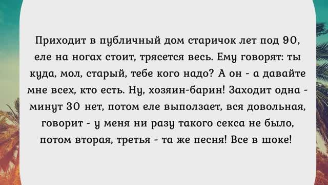 Наш канал создан, чтобы принести еще больше позитивных эмоций. Здесь публикуются видео анекдоты, поднимающие настроения любому и в любой жизненной ситуации. Видео выходят в вторник, четверг,суббота и воскресенье. Используйте юмор с нашего канала, как средство от грусти и как способ поправить здоровье. Располагайте людей к себе с помощью смешного анекдота, смейтесь на здоровье и делитесь шутками с друзьями. Подписывайтесь если Вам понравилось, ставьте лайки, оставляйте комментарии и делитесь с друзьями. Если вам понравилось и чтобы быть в курсе ежедневных видео сборников подписывайтесь: https://rutube.ru/channel/32953744/ Telegram canal: https://t.me/+8LOQNppN8UZhOTdi В этом видео используется трек Forever Believe (2:42). Автор трека- Jason Shaw, музыка взята с сайта: https://audionautix.com/, тип лицензии - Creative Commons Attribution 4.0 international License (https://creativecommons.org/licenses/by4.0/ #супер #класс #омужчинах #шоу #анекдотпроженщин #юмор #смешнодослез #новыеанекдоты #позитив #сборниканекдотов #смешныеанекдоты #приколы #анекдоты #посмеяться #мистербист #гоблин #веселье #опер #отборныеанекдоты #геннадийветров #жириновскийанекдот #поговорка #пословица #пучков #анекдот про #анекдоты самые #анекдот года #анекдоты самые смешные #анекдоты до слез #посмешней анекдот #юмор #анекдоты2025 #новыеанекдоты #мужижена