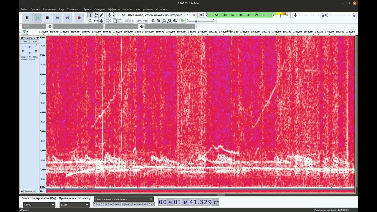 Геомагнитный звук 29-05-2025 старт19:24(UT+3h) 48ч - ускорено 1000Х - 1 Гц = 1000 Гц