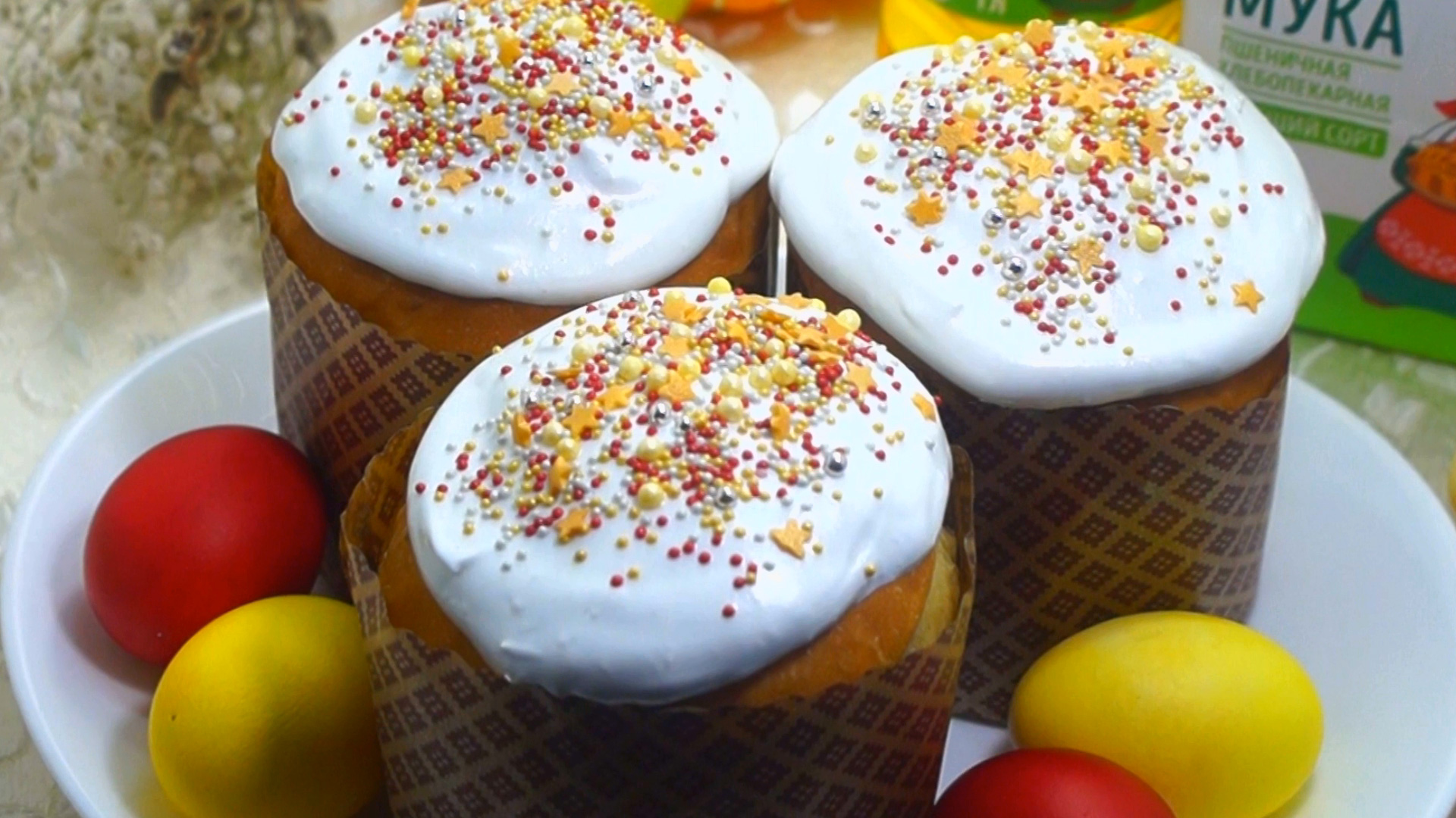 Кулич с изюмом – этот рецепт поможет вам приготовить очень вкусный и нежный пасхальный кулич с изюмом. Ингредиенты: - 750-800 г муки ТМ «Алейка», - 300 мл молока, - 200 г сахара, - 100 г красного изюма, - 100 г сливочного масла, - 50 мл коньяка, - 5 яиц, - 6 ст. ложек подсолнечного масла ТМ «Алейка», - 4-5 ст. ложек сахарной пудры, - 1/2 лимона, - 1/2 ч. ложки соли, - 10 г сухих дрожжей, - 1 пакетик ванилина, - кондитерская посыпка для украшения. Приготовление: 1. Приготовить опару. В миску вылить 300 миллилитров теплого молока. Добавить 10 грамм сухих дрожжей. Добавить 2 столовых ложки сахара и 4 столовых ложки муки ТМ «Алейка». Хорошо перемешать и оставить на 20 минут. 2. 100 грамм чистого красного изюма без косточек замочить в 50 миллилитрах коньяка и оставить на 1 час. Вынуть изюм и обсушить. 3. Пока опара подходит, разделить 2 яйца на желтки и белки. Остальные 3 яйца разбить в миску к желткам, это всё пойдет в тесто. 2 отдельных белка убрать в холодильник. 4. Яйца вылить в большую миску, добавить 150 грамм сахара и 1 пакетик ванилина. Хорошо перемешать венчиком. 5. Опару перемешать и влить 100 грамм растопленного сливочного масла. Добавить 3 столовых ложки подсолнечного масла ТМ «Алейка» и 1/2 чайной ложки соли. Хорошо перемешать. 6. Добавить яичную смесь и перемешать. Частями добавить 600-650 грамм муки ТМ «Алейка» и завести тесто. 7. Когда тесто станет трудно замешивать в миске, высыпать на стол 150-200 грамм муки ТМ «Алейка» и выложить тесто из миски. Вымешивать на столе 7-10 минут. 8. Чистую и сухую миску хорошо смазать подсолнечным маслом ТМ «Алейка», переложить тесто в миску и сверху смазать подсолнечным маслом. Накрыть пищевой пленкой и оставить на 30 минут. 9. Снять пищевую пленку. Хорошо обмять тесто руками. Выложить тесто на стол. Смазать подсолнечным маслом и добавить изюм. Вымесить тесто с изюмом. Переложить тесто обратно в миску и смазать подсолнечным маслом. Накрыть пищевой пленкой и оставить тесто на 30 минут. 10. Тесто снова обмять. Стол чуть присыпать мукой и разделить тесто на части, сформировать каждую часть. Выложить тесто в формы для куличей на 1/3 от объема форм. 11. Оставить на столе на расстойку на 20-25 минут до того, как тесто поднимется на половину от объема форм. 12. Переложить формы на противень и выпекать в разогретой до 160 градусов °С духовке, 10-12 минут. Затем увеличить температуру до 180 градусов °С, выпекать еще 15-20 минут в зависимости от величины куличей. Если вверх начнет сильно румяниться, накройте небольшим листом фольги, так куличи не подгорят. 13. Готовые куличи полностью остудить. 14. Приготовить белковую глазурь. Для этого в миске взбить 2 охлажденных яичных белка 1-2 минуты. Добавить 4-5 столовых ложек сахарной пудры и взбивать еще 2-3 минуты. В конце добавить несколько капель лимонного сока. 15. Накрыть глазурь пищевой пленкой и держать в холодильнике, пока остывают куличи. 16. Остывшие куличи украсить белковой глазурью. Посыпать кондитерской посыпкой. Куличи с изюмом готовы. Можно подавать к пасхальному столу. Приятного аппетита! С наступающей Пасхой! Любви, счастья, благополучия и добра! Чтобы не потерять рецепт, добавляйте его к себе в избранное, оставляйте комментарии и пожелания. #алейка #рецептоталейки #вкусныерецепты #куличсизюмом #кулич #пасха ДРУГИЕ РЕЦЕПТЫ МОЖНО НАЙТИ НА САЙТЕ: https://aleyka.ru/ Алейка в Одноклассниках: https://ok.ru/aleyka.altay/ Алейка в Вконтакте: https://vk.com/aleyka_altay Алейка в Telegram: 