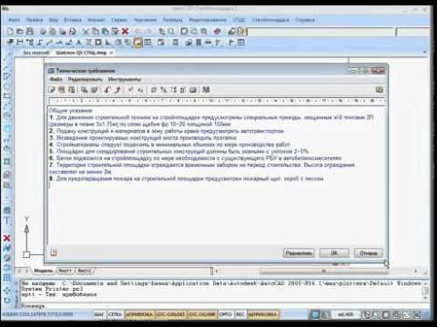 Показано оформление листа строительного генерального плана в программе Стройплощадка 2.0: нанесение рамки формата, ведомостей объемов работ, текстовых технических требований и примечаний к разделам ПОС/ППР.