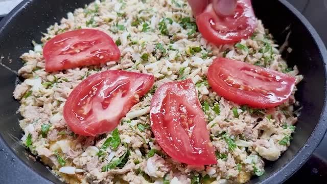 Здравствуйте, уважаемые подписчики и гости моего канала! Необычный, но очень вкусный и нежный капустный пирог с начинкой из консервированного тунца и помидор. Хорош и к обеду, как самостоятельное блюдо, и к ужину. ✅Ингредиенты: Нашинковать небольшой вилок капусты; залить кипятком; 1 банка консервированного тунца; 2 вареных яйца; слейте всю воду с капусты; 2 яйца; соль, перец; 1 столовая ложка муки; все хорошо перемешать; 1/2 часть капусты жарить на растительном масле с двух сторон; небольшой пучок петрушки; 1 помидор; сыр по вашему вкусу; жарить под крышкой на медленном огне, чтобы сыр расплавился; Спасибо, что смотрите, комментируете и лайкаете мои видео! Приятного аппетита! Спасибо что, смотрите👀 мои видео! Если Вам не сложно, подпишитесь🔊 на мой канал. Если Вам понравилось видео, поставьте 👍 💘,сделайте репост;) Буду рад любому донату💲 на корм моему котику Василию 🐱😇🌹 Вам мелочь, а нам приятно.🌹
