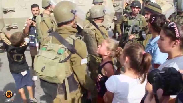 Палестинская девочка перед израильскими солдатами.