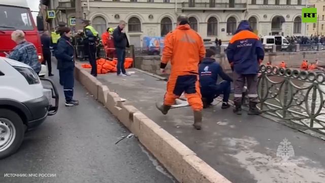 Момент падения автобуса в реку в Санкт-Петербурге