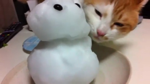 Котик любит снеговика