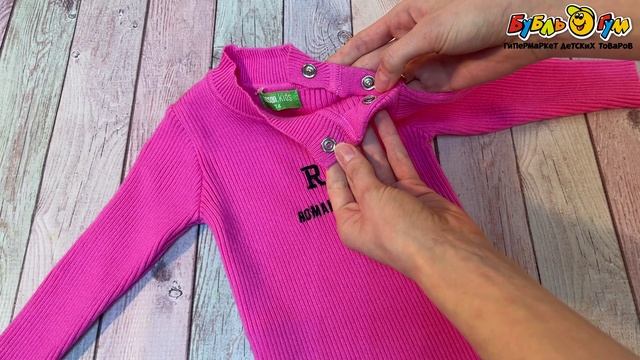 329625 Водолазка Lanson Kids на кнопках в рубчик с надписью розовая