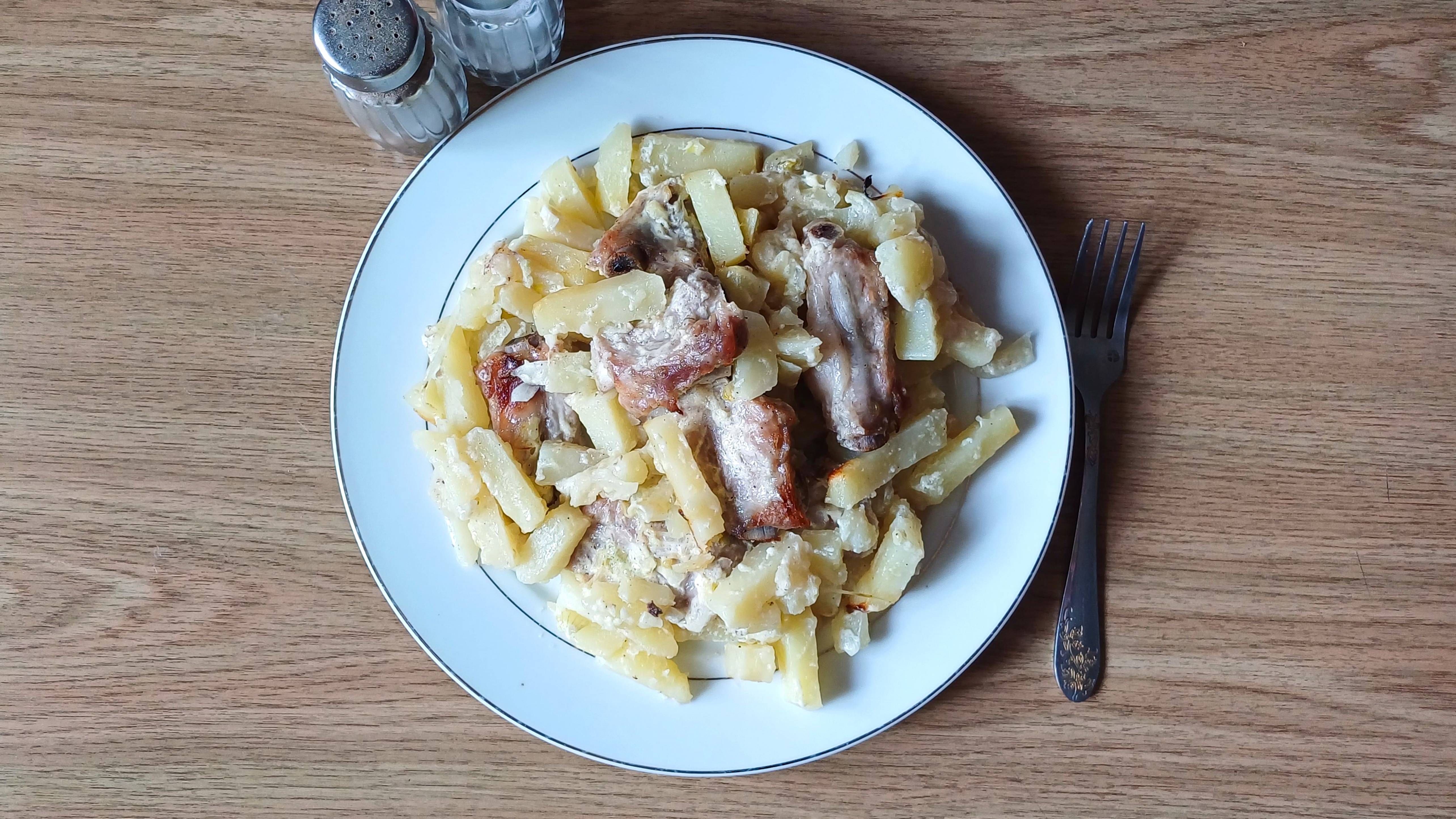 Привет всем! Сегодня готовлю для своей семьи свиные ребрышки в рукаве. Очень вкусно получается. Советую приготовить! Пальчики оближете! Всем желаю всего самого наилучшего, светлого, доброго! Ингредиенты: Свиные ребрышки - 400 гр Картофель - 500 гр Лук- 2 большие головки Чеснок - 3 зубчика Вода - 30 мл Майонез - 3 стол. ложки Масло растительное - 0,5 стол. ложки Соль, перец по вкусу