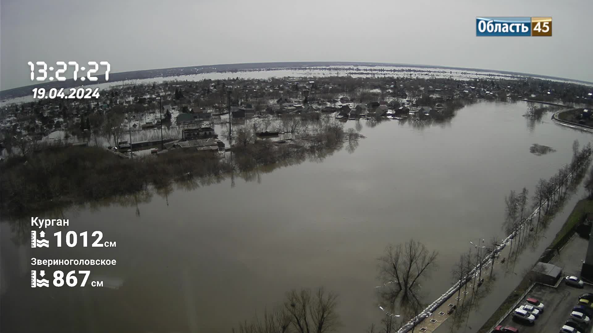 Паводок 2024 Курган. Вид на кировский мост.