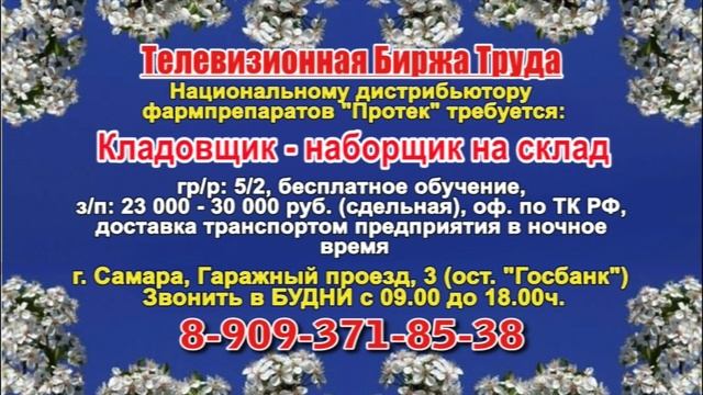 Вакансии и телефоны прямых работодателей в специализированной программе по трудоустройству "Телевизионная Биржа Труда" - г.САМАРА, г.ТОЛЬЯТТИ т/к РЕН-ТВ