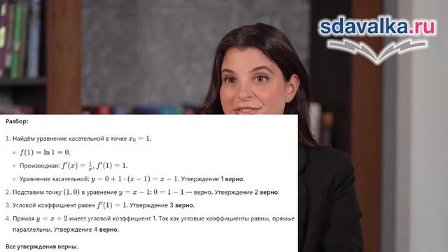 Геометрический смысл: значение производной в точке есть угловой коэффициент касательной к графику функции в этой точке (f'(x₀) = k = tg α) . Вывод уравнения касательной к графику функции в точке: y = f(x₀) + f'(x₀)(x - x₀) . Алгоритм составления уравнения касательной. Подготовка и обучение школьников с помощью ИИ: https://sdavalka.ru/. Как работать? - Зарегистрируйтесь. - Найдите нужный предмет и класс. - Изучите материалы по урокам: текст, понятный ученикам, сжатый видеоурок с ИИ. - Пройдите тренировочный тест (можно проходить бесконечно, для усвоения материала). - Уверены, сдавайте экзаменационный тест! - И так по каждой теме. - В конце итоговый тест. - Сдадите все - сдадите любой экзамен! Системы дистанционного образования, контент: https://ecre.ru/ Подготовка для ВУЗов и СУЗов: https://mexam.ru/