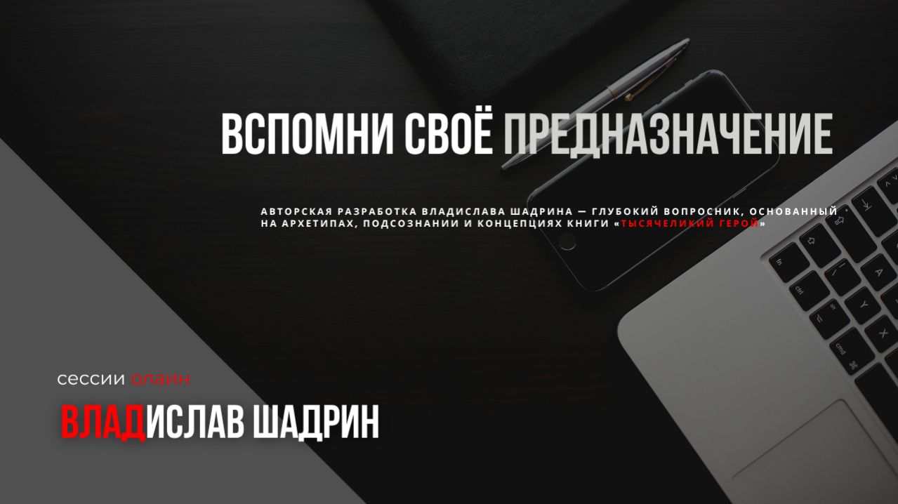 Вопросник для выявления предназначения ________________________________________ Когда-то и я пытался понять и осознать, для чего я здесь, зачем я родился и какое моё предназначение, понимая, что я рождён для чего-то лучшего, чем просто обладать какой-то профессией и всю свою жизнь ходить куда-то, потому что «надо»... В поисках ответов я обращался в эзотерику, нумерологию и другим внешним системам, пытаясь найти свою миссию в цифрах, картах или расположении звёзд. Но в итоге я пришёл к логическому выводу и глубокому пониманию: твой дар и твоя миссия не находятся снаружи. Они не спрятаны в чужих расчётах и не висят где-то в пространстве. Твоё предназначение всегда было с тобой, внутри тебя, с самого первого вдоха. Ты просто о нём позабыл или тебе помогли обстоятельства, общество и «старый мир» это сделать. Правда в том, что путь к себе — это не поиск чего-то нового, а процесс вспоминания. Как указывает автор в своей методике, истинная цель подобных практик это «воспоминания вашего предназначения из глубины вашего подсознания». Это не работа логики, а пробуждение твоего истинного пути, внутреннего дара и скрытой миссии, которые уже заложены в тебе. Самое простое — это вспомнить. Для этого не нужно искать новые сложные формулы. Нужно лишь: • Остановиться и найти тихое место, сконцентрироваться, сосредоточившись на чём-то одном. • Подумать-вспомнить «зов своей души», почувствовать это чувство, когда-то, возможно очень давно, прозвучал-ощущалось это впервые. • Довериться не холодному рассудку, а первому импульсу: образу, ощущению или тому «знанию без объяснений», которое рождается в теле. Твоё подсознание уже знает все ответы. Твой внутренний Герой, твой уникальный Архетип и твоя сила просто ждут момента, когда ты позволишь им «воскреснуть». Путь открывается тому, кто готов перестать искать ответы вовне и решится заглянуть вглубь себя, чтобы наконец-то вспомнить, ради чего он здесь на самом деле. Этот опросник Владислава Шадрина помогает раскрыть предназначение через подсознание и архетипы. Методика включает пять этапов: от принятия зова души до реализации миссии. Цель этой методики, помочь тебе пробудить твой истинный путь, внутренний дар и скрытую миссию. Весь процесс разбит на несколько ключевых этапов, которые ведут от осознания «ощущения чувства-зова» до конкретной реализации предназначения в жизни. #владиславшадриншаман #мотивация #психология #саморазвитие #жизнь #vladislavshadrinshaman #предназначение #коучинг #как #бизнес #деньги #убеждения #нлп #консультациионлайн #достижениецелей #как Телеграмм: https://t.me/solution_is_the В контакте: https://vk.com/vladislav_shadrin_nlp Подробнее о технике: https://vk.com/@vladislav_shadrin_nlp...